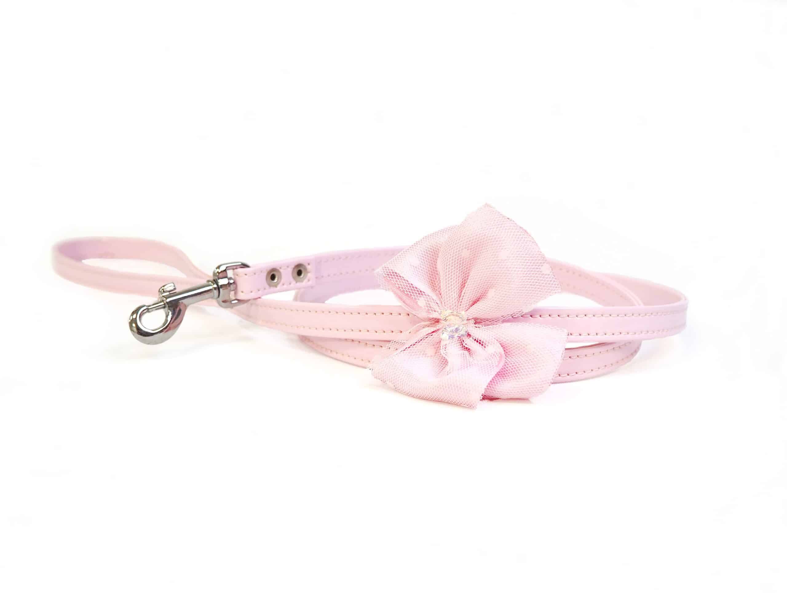 Correa Ninette destaca por su lazo de tul y mariposa de Swarovski en el centro del lazo. Una correa que va a conjunto del arnés o collar Ninette un conjunto que no dejará indiferente a nadie, una auténtica cucada para los Reyes y Reinas de la casa.